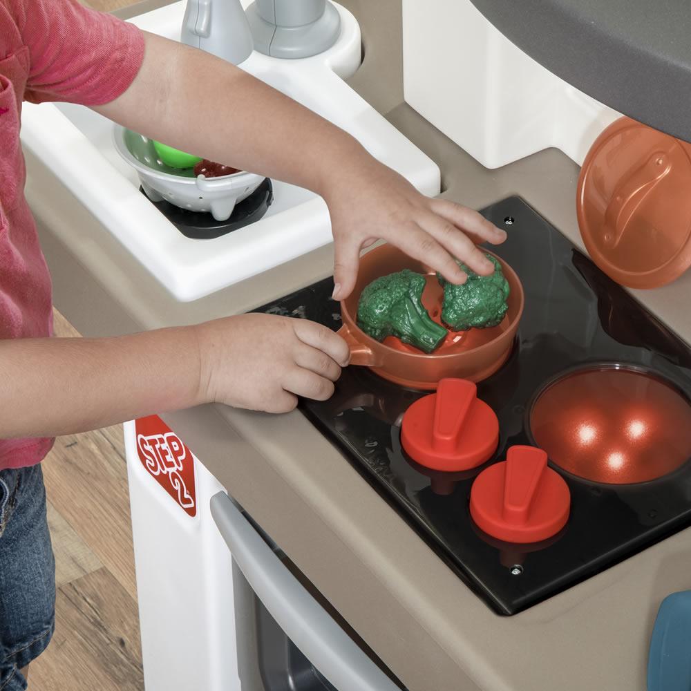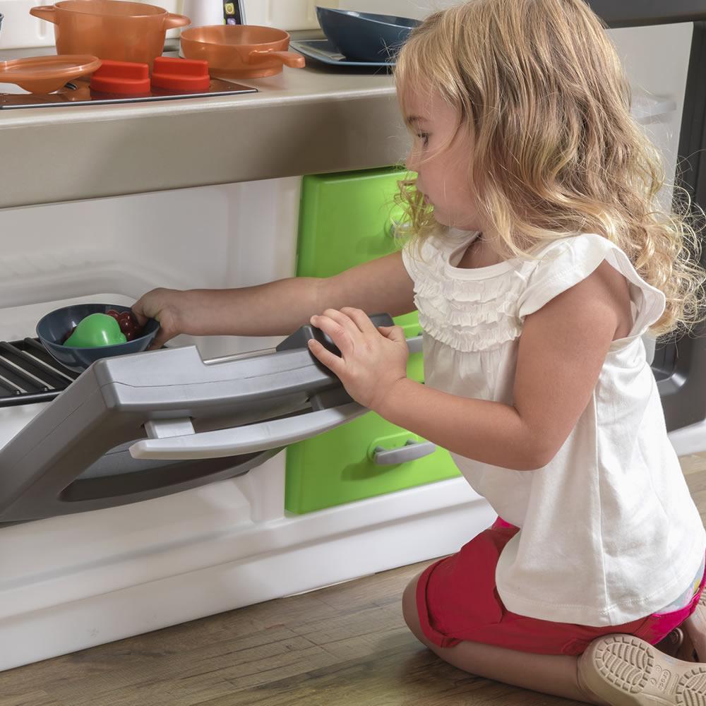 Esta moderna cocina de juego Step2 permite a los niños preparar su comida favorita en su propia cocina. ¡Con el estilo europeo y el diseño a la moda, este juego de cocina de juego seguramente será un éxito en los próximos años!