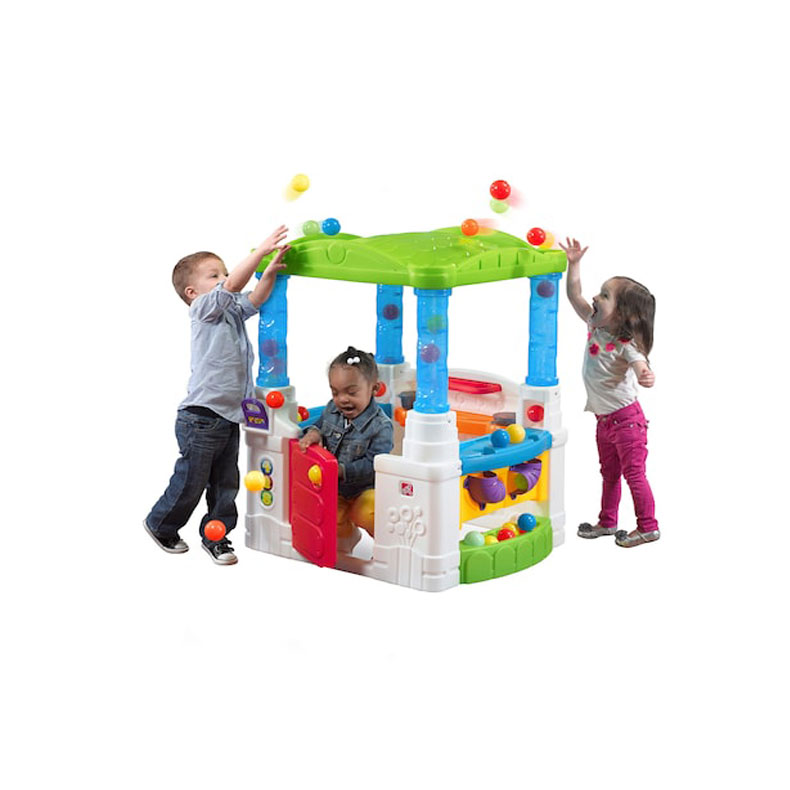 Esta Casita de Step 2 será el éxito del vecindario en poco tiempo! Incluye una pared de actividades, resbaladilla de 1.2 metros de largo, y un espejo irrompible al estilo casa de la risa. Genial para el uso de varios niños; Hay algo para todo el mundo! Hecho en EUA de partes de EEUU e importadas. Blanco y pelotas fabricadas en China.